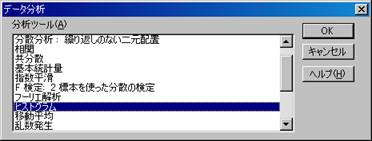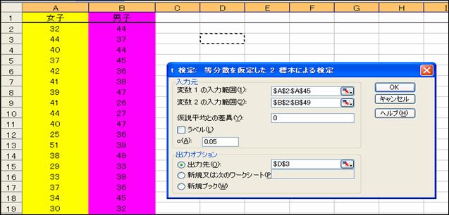 [1] ƒf[ƒ^‚ª“™•ªŽU‚©‚Ç‚¤‚©‚ðŠm”F‚µ‚½‚¯‚ê‚ÎCExcel‚¾‚Æuƒc[ƒ‹v¨u•ªÍƒc[ƒ‹v¨uFŒŸ’è2•W–{‚ðŽg‚Á‚½•ªŽU‚ÌŒŸ’èv‚ð‘I‚ñ‚ÅC‚±‚̃y[ƒW‚ÌtŒŸ’è‚Æ“¯‚¶‚悤‚É2‚‚̃f[ƒ^‚ð‘I‘ð‚·‚é‚ÆŽÀŽ{‚Å‚«‚Ü‚·B‚»‚Ìê‡Cp ‚Ì’l‚ª0.05ˆÈã‚È‚çC2‚‚̃f[ƒ^‚Í“™•ªŽU‚Å‚ ‚邯‚í‚©‚è‚Ü‚·B