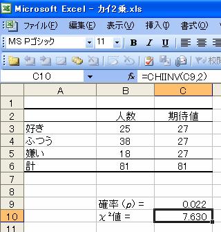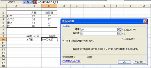 ƒJƒC“ñæ‚̃Ô2’l‚Æ—LˆÓŠm—¦‚ÍuPearson‚̃JƒC2æv‚Ì•”•ª‚ðŠm”F‚·‚éB