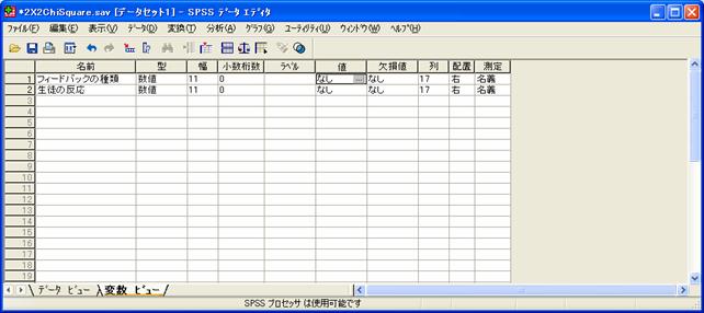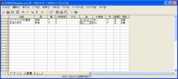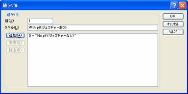 SPSS‚Ìu•Ï”ƒrƒ…[v‚ðƒNƒŠƒbƒN‚µ‚ÄCƒtƒB[ƒhƒoƒbƒN‚ÌŽí—Þ‚Ì’lƒ‰ƒxƒ‹‚ð‘I‘ð‚µ‚ÄCu0=No pfiƒWƒFƒXƒ`ƒƒ[‚È‚µjvCu1=With pfiƒWƒFƒXƒ`ƒƒ[‚ ‚èjv‚Æ‚¢‚¤ƒ‰ƒxƒ‹‚ð‚‚¯‚Ü‚·B